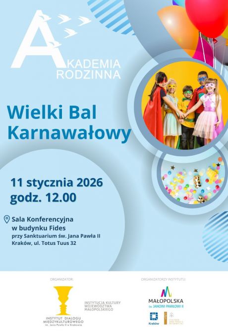 Już 11 stycznia 2026 roku o godzinie 12:00 Instytut Dialogu Międzykulturowego serdecznie zaprasza na niezapomniany Wielki Bal Karnawałowy!