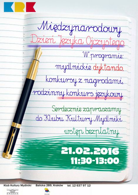Dbajmy o niego każdego dnia a szczególnie w Międzynarodowym Dniu Języka Ojczystego! W jaki sposób? Przyjdźcie do Klubu Kultury Mydlniki i weźcie udział w: