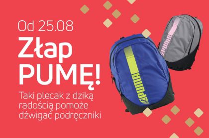 Wrzesień tuż, tuż, a wraz z nim nieodłączny czas szkoły. Warto umilić najmłodszym ten moment i sprawić im niespodziankę. Zrób zakupy w Serenadzie, okaż paragony i odbierz nowy plecak PUMA, który z dziką radością pomoże dźwigać wszystkie podręczniki!