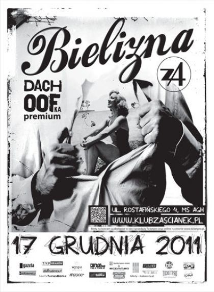17 grudnia w krakowskim Klubie Zaścianek (ul. Rostafińskiego 4) będzie można usłyszeć grupę BIELIZNA. Zespół ten konsekwentnie idzie własną drogą skierowaną w stronę osobników oczekujących niebanalnej werbalno-rockandrollowej przygody.