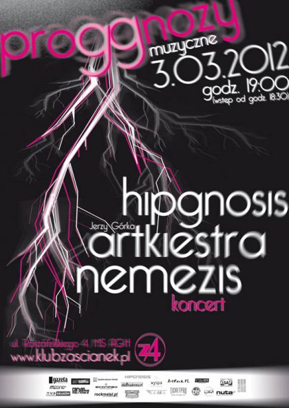 ProGGnozy to nowy projekt muzyczny, mający na celu propagowanie i prezentację brzmień okołoprogresywnych. Podczas cyklu koncertów organizowanych w Klubie Zaścianek (Kraków, ul. Rostafińskiego 4), swoją twórczość prezentować będą muzycy ambitni, nietuzinkowi, stroniący od komercji, unikający powielania schematów i banału, dla których poszukiwanie i odkrywanie unikalnych rozwiązań, zarówno w warstwie brzmieniowej, jaki i tekstowej, stanowi esencję działań artystycznych. Podczas pierwszego spotkania - 3 marca, godz. 19.00 - usłyszymy trzy zespoły: HIPGNOSIS, JERZY GÓRKA ARTKIESTRA oaz NEMEZIS.