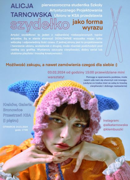 Wystarczy włóczka, szydełko i odrobina wolnego czasu, aby wyczarować cuda. Przekonają się o tym uczestnicy warsztatów, zaplanowanych w najbliższą sobotę w Galerii KSA. W ramach zajęć przyszli rękodzielnicy poznają podstawy szydełkowania, a następnie spróbują stworzyć swoje pierwsze prace. Nad przebiegiem wydarzenia czuwać będzie projektantka mody i słuchaczka SAPU, Alicja Tarnowska. Młoda artystka z przyjemnością udzieli cennych wskazówek i odpowie na zadawane pytania. Chętni będą mogli również zakupić tworzone przez Alicję akcesoria z włóczki lub złożyć zamówienie na indywidualny projekt.
